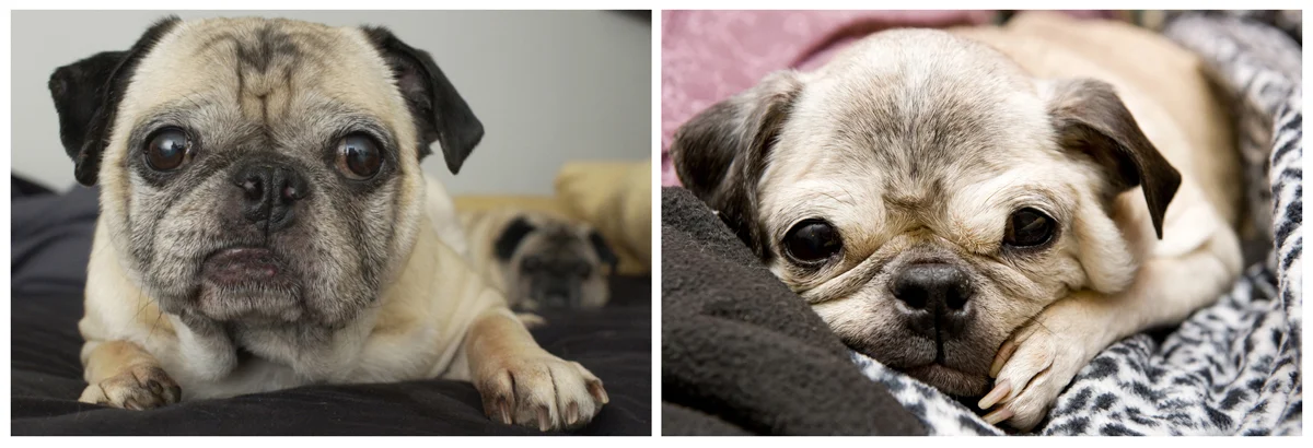 Pugsly dealt with bladder stones, a thyroid condition, a severe case of inflammatory bowel disease, and a severe allergy to both white rice and steroid drugs that nearly killed him in 2006. He also went blind and deaf, developed a pretty bad case of arthritis in his back, and eventually died at 16 of cognitive onset disease, which is a technical way of saying he had dementia and basically lost his mind.